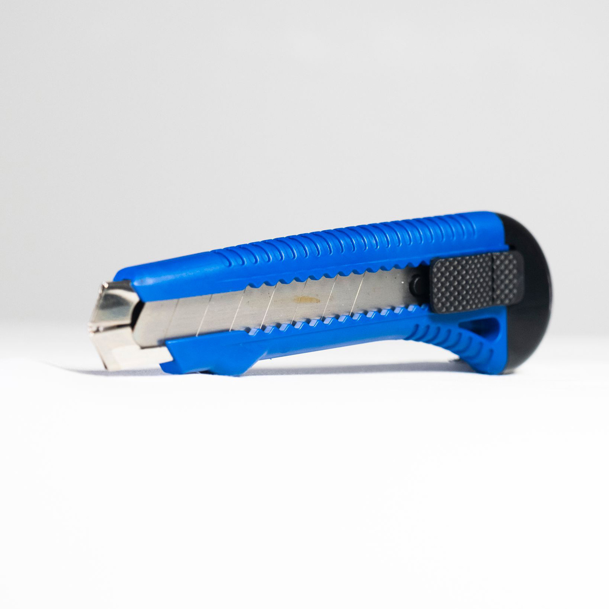 Packing knife with a retractable blade for cutting through packing tape and boxes